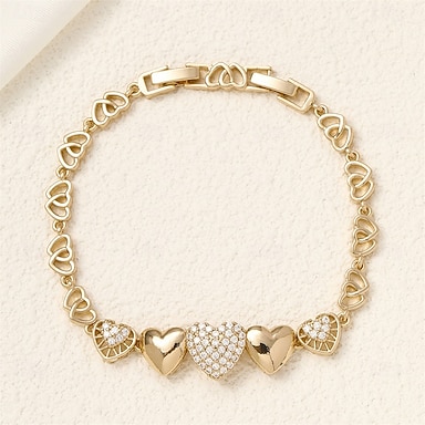 Kubisk Zirkoniumoxid Klassisk geometriska Hjärtformad Elegant Personlig Enkel Trendig Krom Armband Smycken Silver / Guld Till Bröllop Fest Förlovning Bal