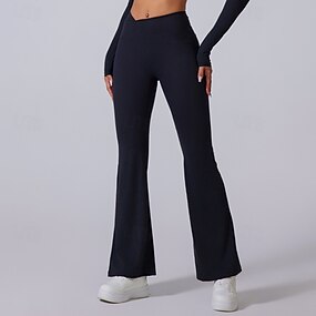 Dam Yogabyxor Sidfickor Utsvängda byxben Bootcut Magkontroll 4-vägs sträcka Andningsfunktion Hög midja Yoga Kondition Gymträning Byxa Damasker Underdelar Mörkgrå Marin Vin Vinter Plusstorlekar sporter