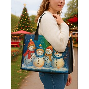 Damväska med julsnögubbetryck, axelväska i canvas med stor kapacitet, handväska för vintergåvor för kvinnor