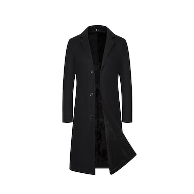 Men's Winter Coat Overcoat Trench Coat Outdoor Daily Wear Fall & Winter Polyester Thermal Warm Windproof Outerwear Clothing Apparel Fashion Streetwear Plain Lapel Single Breasted