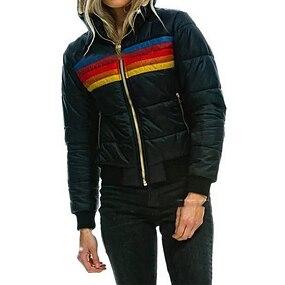 Women's Parka Outdoor Street Daily Fall Winter Regular Coat Regular Fit Windproof Warm Comtemporary Stylish Casual Jacket Long Sleeve Color Block Stripes with Pockets Full Zip Lake blue Black Dark