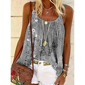 Women's Camisole Tank Top Floral Daily Casual Sleeveless Strap Regular Tops Daily Print Pink Sky Blue Gray Summer