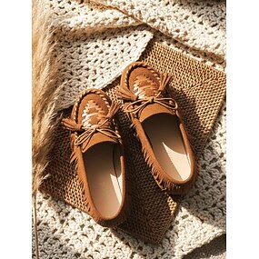 Women's Suede Moccasin Flats – Boho-Inspired Loafers with Fringe and Lace-Up Detail for Casual Outings, Travel and Everyday Wear