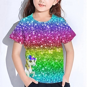 Girls' 3D Graphic Unicorn T shirt Tee Short Sleeve Summer Spring Fashion Basic Kids 4-12 Years Crew Neck Outdoor Casual Daily Regular Fit