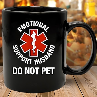 Funny Husband Mug Emotional Support Husband Do Not Pet Black 11oz Coffee Cup Sarcastic Gift for Men Husband Boyfriend Wedding Anniversary Birthday Christmas