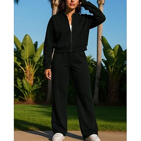Women's Tracksuit Zip Up Sweatshirt Wide Leg Pants Pocket Solid Colored Clothing Suit Fall Black Burgundy Gym Workout Sports Windproof Long Sleeve Sport Activewear Micro-elastic Regular Fit