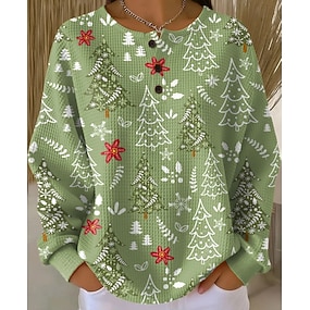 Christmas Women's Christmas Tree SnowflakePullover Sweatshirt Graphic Casual Long Sleeve Half Zip Regular Tops Dailywear Casual Sports White Light Green Brown Light Grey Beige Winter