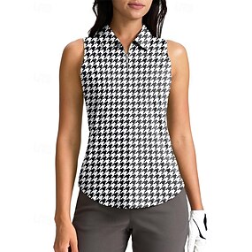 Women's Houndstooth Sport Shirt Golf Polo Shirt Tennis Shirt Sleeveless Zipper High Elasticity Moisture Wicking Breathable Tennis Golf Pickleball Turndown Zip Collar Shirt Top Black Red Blue Tennis